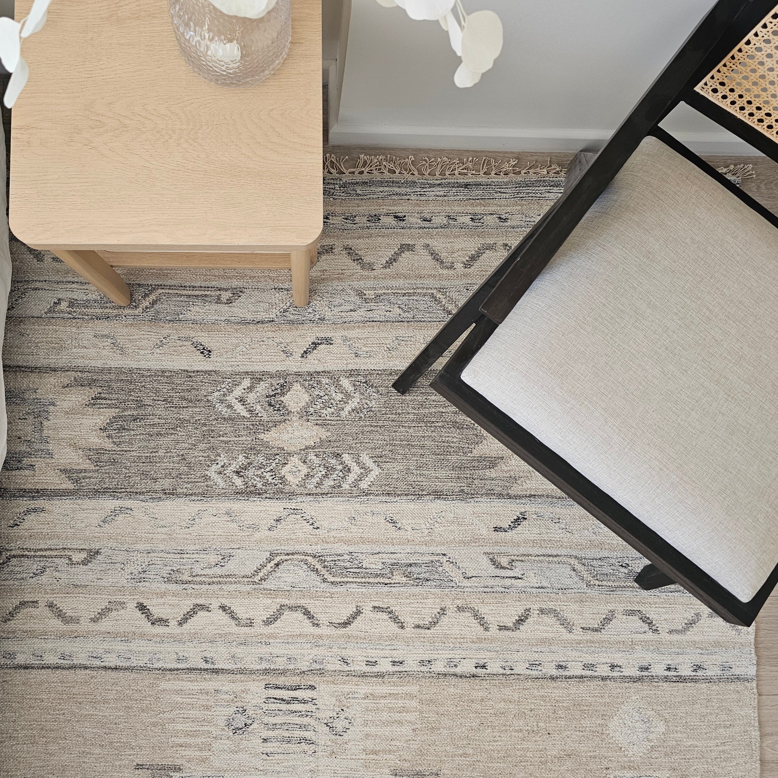 100% lana natural, tejido a mano en técnica kelim.